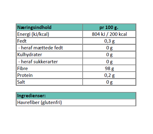 Glutenfrit, hvidt og fintmalet mel med hele 98 % kostfibre.