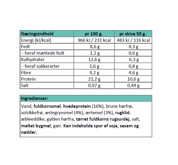 Dette brød er fyldt med protein, som bidrager til en længere mæthedsfornemmelse og gør det ideelt til en aktiv hverdag.